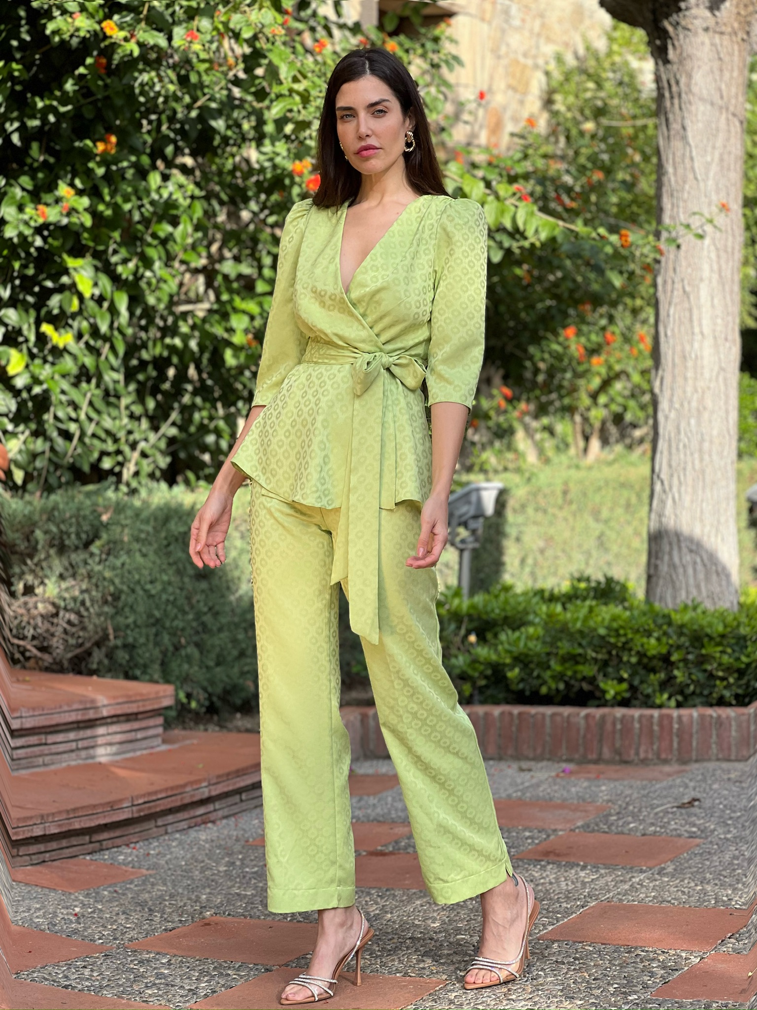conjunto de blusa anudada y pantalón